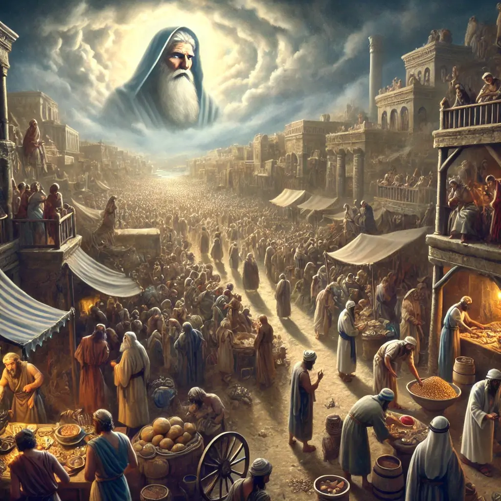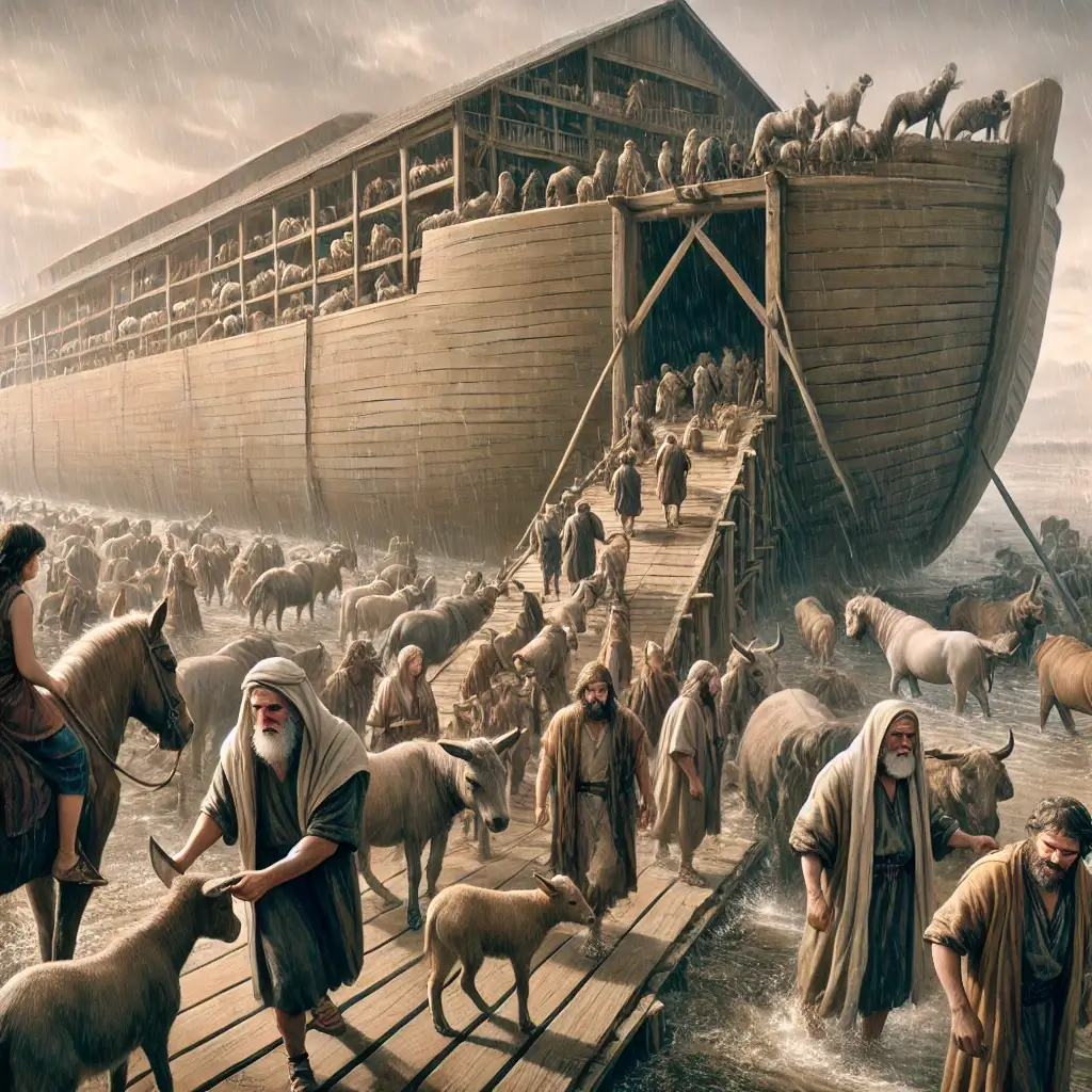 사람들이 땅에서 번성하고 딸들이 태어났을 때, 하나님의 아들들이 사람의 딸들과 결혼하면서 네피림이라는 용사들이 태어났습니다. 하나님은 인간의 죄악이 가득한 것을 보고 사람을 창조하신 것을 후회하며, 지구상의 모든 생명을 멸하기로 결심하셨습니다. - 노아의 은혜