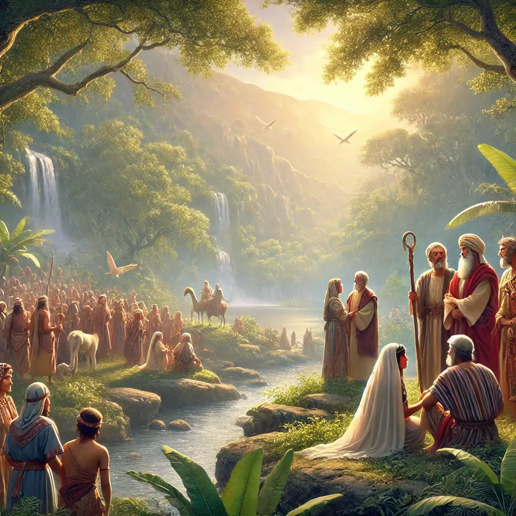 사람들이 땅에서 번성하고 딸들이 태어났을 때, 하나님의 아들들이 사람의 딸들과 결혼하면서 네피림이라는 용사들이 태어났습니다. 하나님은 인간의 죄악이 가득한 것을 보고 사람을 창조하신 것을 후회하며, 지구상의 모든 생명을 멸하기로 결심하셨습니다. - 노아의 은혜